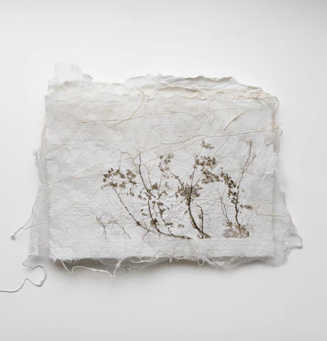 inkAID Image Transfers on handmade, embossed flax paper, some with inclusions. An original series of beautiful and unique mixed media pieces. We rarely encounter hand made papers of this quality combined with image transfers or direct inkjet printing.